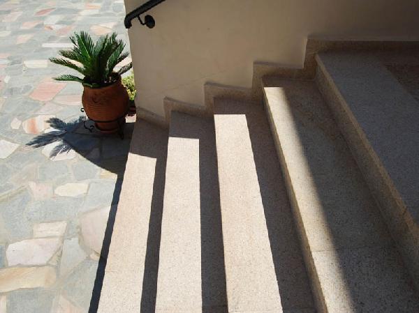 Antická dlažba: Jedná se o stejné provedení jako u "Románské dlažby" ale se speciálním antickým povrchem. Vzhled velmi rustikální. Jde o povrchovou úpravu kamene, aby se dosáhlo dojmu velmi ochozené a používané dlažby stovky let. Kombinace formátů 20 x 20, 40 x 20, 40 x 40, 60 x 40 cm. Tloušťka 3 nebo 4 cm (kalibrované). Povrch Antique, hrany sekané (Antique). Jednotlivé formáty lze kombinovat dle doporučených podlahových skladeb nebo si zákazník může zvolit jaký formát mu nelépe vyhovuje. Schodiště: Ze stejného materiálu můžeme dodat obklad schodů ve formě nástupnic a podstupnic. Nástupnice v povrchové úpravě leštěné nebo opalované. Formát 150 x 35 x 3 cm. Hrany řezané + jedna podélná s opracovanou hranou. Ukončení hrany - zákazník si může zvolit z nabízejících variant. Podstupnice v povrchové opalované. Formát 150 x 20 x 2 cm. Hrany řezané. Typy nástupnic a ukončení hran: Bazény: Obdobně, jako u schodiště můžem řešit okolní plochy kolem bazénu. Bazénové lemy s návazností na dlažbu. Dlažba Macao kolem bazénu - kalibrovaná na tl.: 3 cm, volně navazuje na bazénový lem kalibrovaný na tl.: 3 cm (první alternativa). Ukončení hrany - zákazník si může zvolit z nabízejících variant. Použití dlažbyVhodný pro exteriérové a interiérové plochy a to zejména: - Přístupové cesty k domům. - Cesty v zahradách, tarasy a parkovací plochy. - Vjezdy do garáží, chodníky a bazénové plochy.