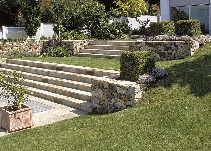 Schodiště: Ze stejného materiálu můžeme dodat obklad schodů ve formě nástupnic a podstupnic. Nástupnice jsou dodávány v povrchové úpravě přírodně štípané. Formát 150 x 35 x 3 cm. Hrany řezané + jedna podélná s opracovanou hranou. Ukončení hrany - zákazník si může zvolit z nabízených variant. Podstupnice v povrchové úpravě přírodně štípané. Formát 150 x 20 x 2 cm. Hrany řezané.