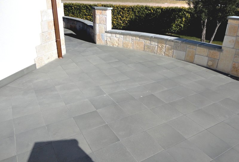 MateriálYorkshire Grey - tento materiál má opravdu prvotřídní kvalitu, co se týče tvrdosti, nasákavosti, odolnosti proti mrazu a jiným povětrnostním vlivům. Barevný nádech od světle šedivé až po tmavě šedou. Velice vhodný materiál ladící k moderní architektuře, která nese prvky funkcionalismu. Kamenná dlažba v přírodním šedém odstínu se stala velmi populární. Šedivé odstíny kamene jsou voleny hlavně pro svoji snadnou kombinaci s dalšími materiály a barvami. Varianty dlažbyDlažba dodávaná v mnoha provedeních např. ve formě pásů (pásová dlažba) šířky 10, 15, 20 cm a volné délky od 30 – 80 cm. Nebo ve formě dlaždic 30/30, 40/40, 60/60 cm. Tloušťka 2 - 5 cm pro venkovní dlažby a 1 - 2 cm pro obklad.