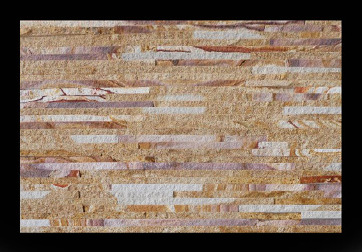 Rainbow - kamenný obklad z přírodního pískovce s duhovou texturou představuje jedinečný designový stavební prvek, kterým můžete ozvláštni exteriérové plochy stejně jako interiérové.