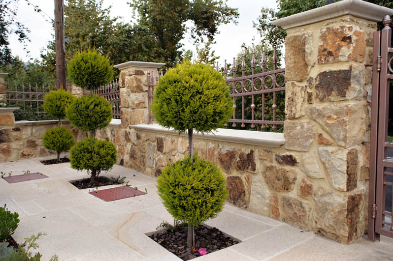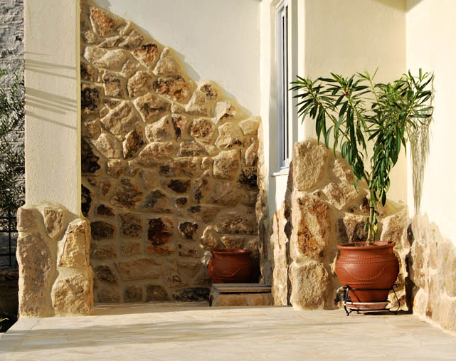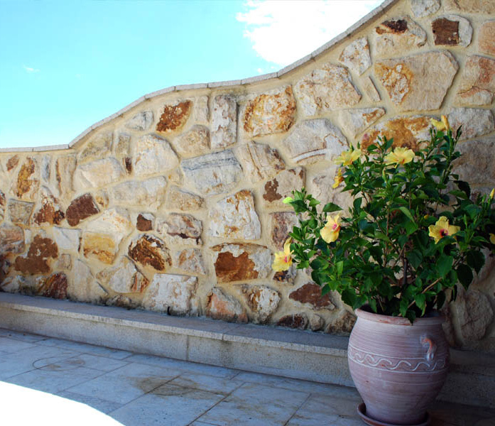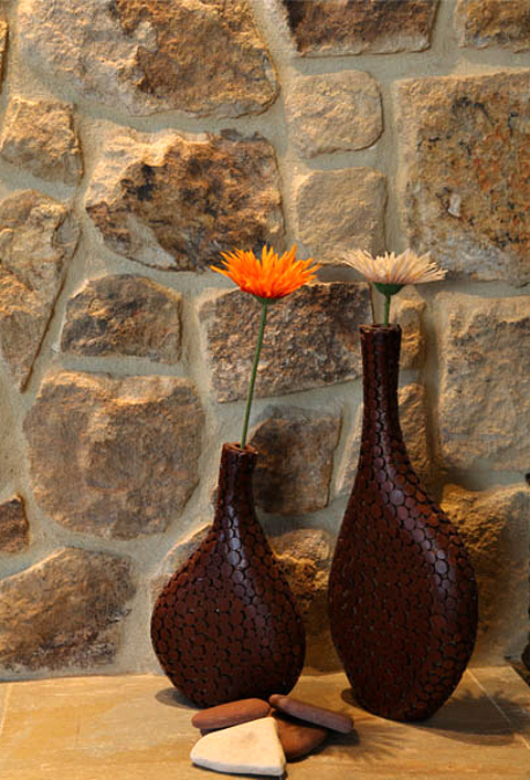 Materiál:Nepravidelný pískovec imitující kamenné zdivo z lomového kamene. Jedná se o přírodní kámen. Barevnost materiálu - tmavě a světle hnědá s prvky žluté a černé. Formát:Pískovcový obklad s běžnou nasákavostí a dobře udržovatelným povrchem. Dodávaný v nepravidelných formátech - výška 20 - 40 cm, délka 20 - 50 cm. Tloušťka obkladových desek od 4 - 6 cm. Hrany nepravidelné štípané, povrch přírodně štípaný. Lze aplikovat přímo na stavební konstrukci nebo formou přizdívky. Z rubové strany je povrch řezaný pro lepší přilnutí na lepený podklad. Konečný vzhled obkladu závisí na požadavku zákazníka. Lze provést se spárou nebo beze spár. K dispozici jsou i rohové prvky. Použití:Vhodný pro exteriérové a interiérové plochy a pro zateplovací systémy. Doporučuje se dvojitá perlinka pro lepší soudržnost celého systému. |