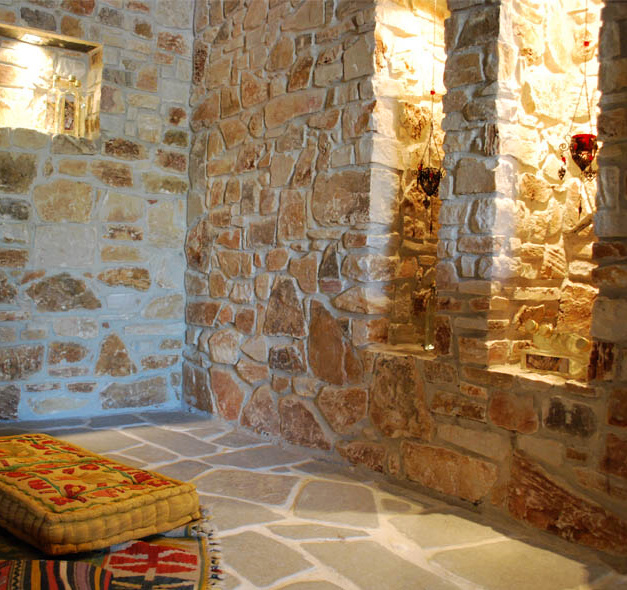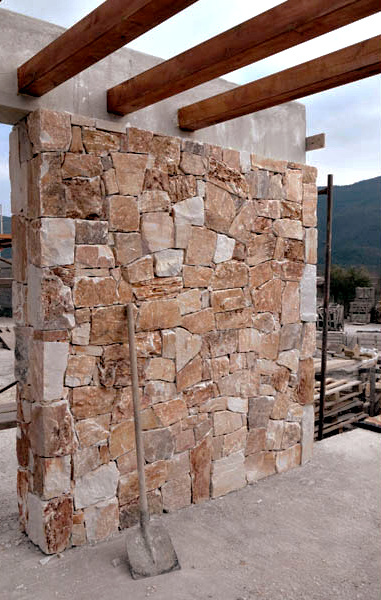 Materiál:Nepravidelný vápenec imitující kamenné zdivo z lomového kamene. Jedná se o přírodní kámen. Barevnost materiálu od tmavě a světle hnědé s lehkým nádechem červené a černé. Formát:Vápencový obklad s minimální nasákavostí a dobře udržovatelným povrchem. S velmi tvrdou strukturou. Dodávaný v nepravidelných formátech - výška 20 - 40 cm, délka 20 - 50 cm. Tloušťka obkladových desek od 4 - 6 cm. Hrany nepravidelné štípané, povrch přírodně štípaný. Lze aplikovat přímo na stavební konstrukci nebo formou přizdívky. Z rubové strany je povrch řezaný pro lepší přilnutí na lepený podklad. Konečný vzhled obkladu závisí na požadavku zákazníka. Lze provést se spárou nebo beze spár. K dispozici jsou i rohové prvky. Použití:Vhodný pro exteriérové a interiérové plochy a pro zateplovací systémy. Doporučuje se dvojitá perlinka pro lepší soudržnost celého systému. |